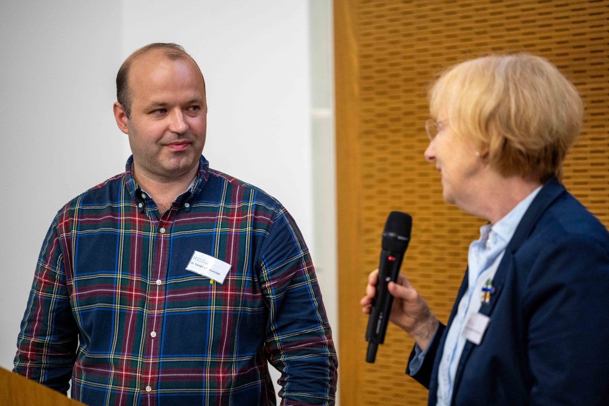 Prof. Birgitta Weltermann begrüßt den Gast aus Kiew Dr. Yaroslav Diakunchak