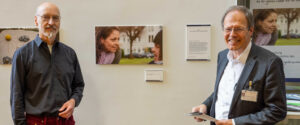 Prof. Wolfgang Holzgreve, Ärztlicher Direktor und Vorstandsvorsitzender des UKB, und Thomas Meier vom Ambulanten Kinder- und Jugendhospizdienst Bonn eröffnen die Fotoausstellung „Mütter“ des Kinderhospizdienstes Bonn im BMZ I des UKB, um auf den Tag der Kinderhospizarbeit aufmerksam zu machen
