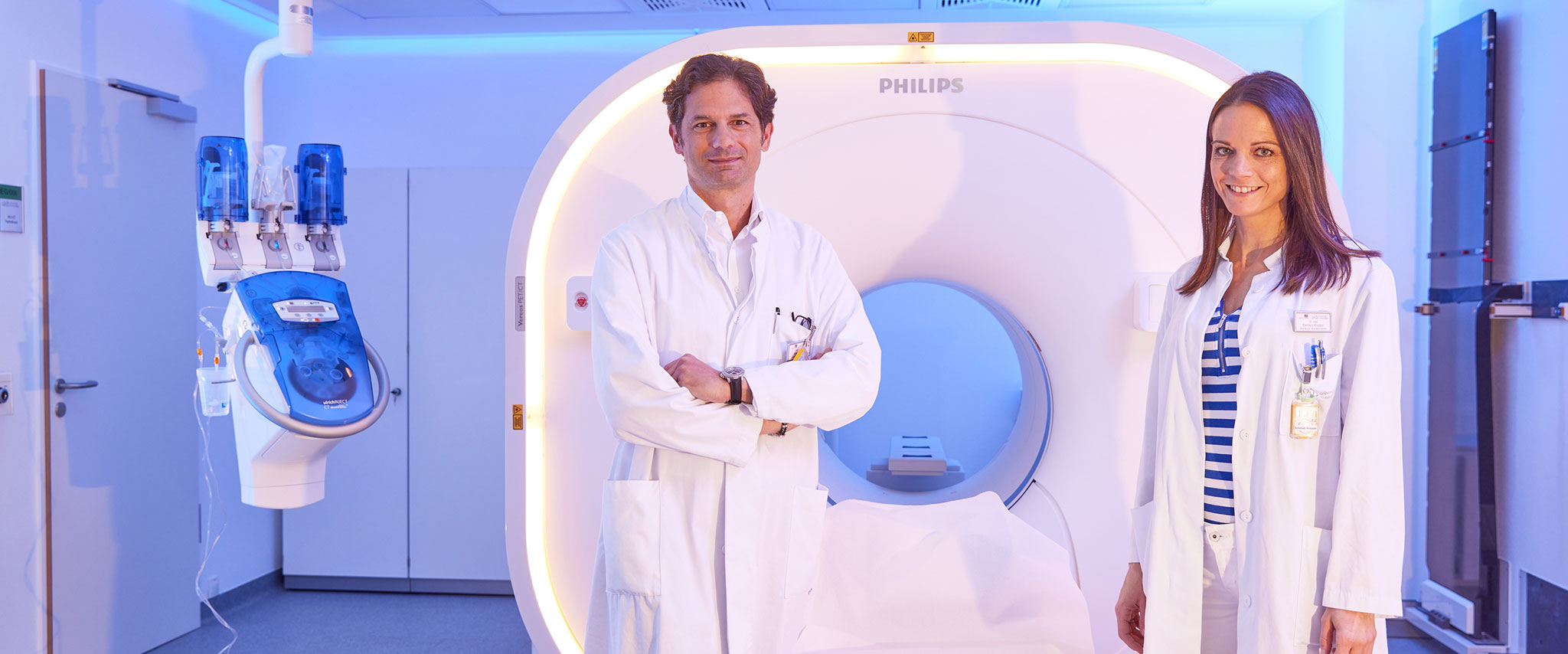 Die Nuklearmedizin am UKB bietet das gesamte Spektrum moderner theranostischer Verfahren an, darunter Radioiodtherapien für Schilddrüsenerkrankungen, Peptidrezeptor-Radiotherapien bei neuroendokrinen Tumoren sowie PSMA-basierte Therapien beim Prostatakarzinom. Ein besonderer Fokus liegt auf personalisierten Radioligandentherapien, die individuell auf die molekularen Eigenschaften eines Tumors abgestimmt werden.
